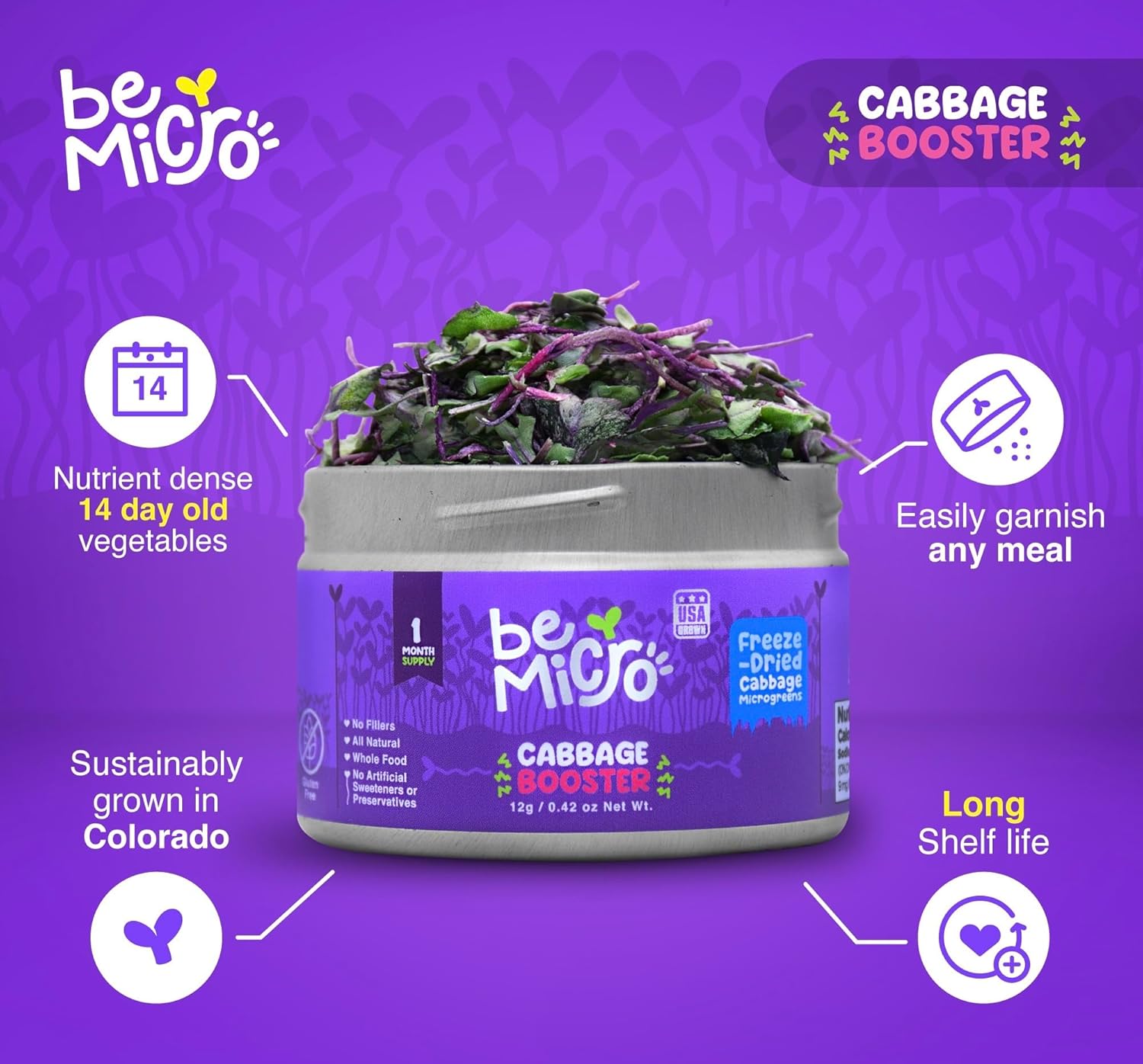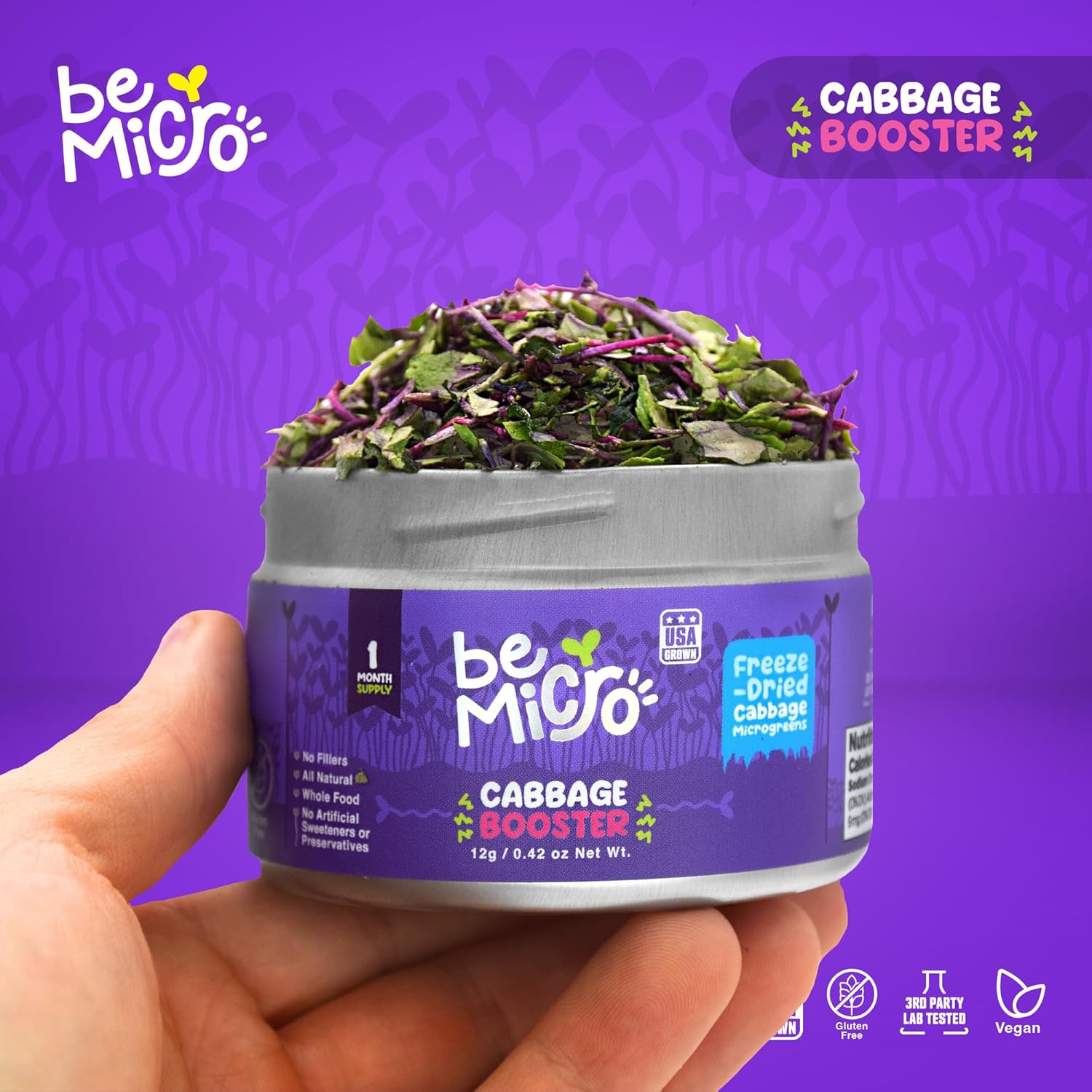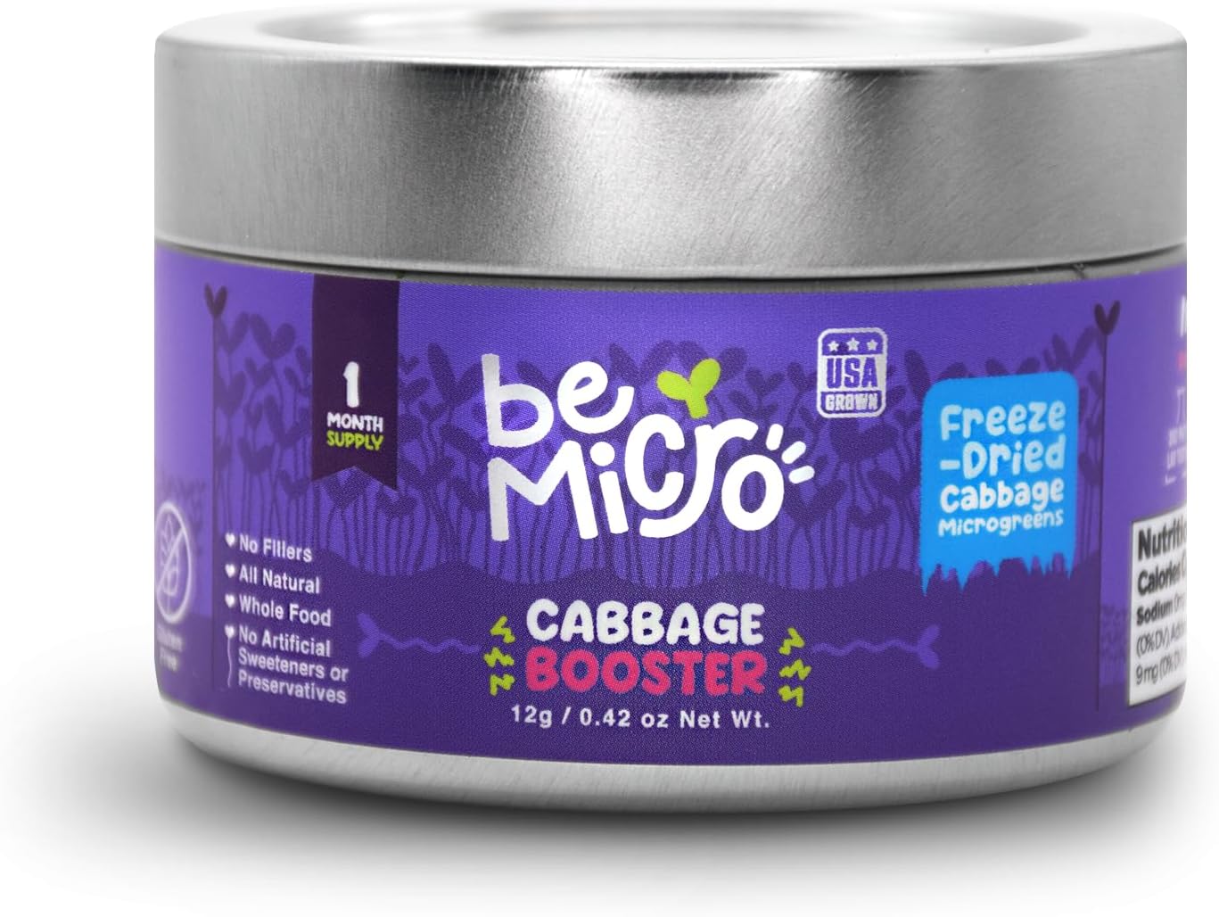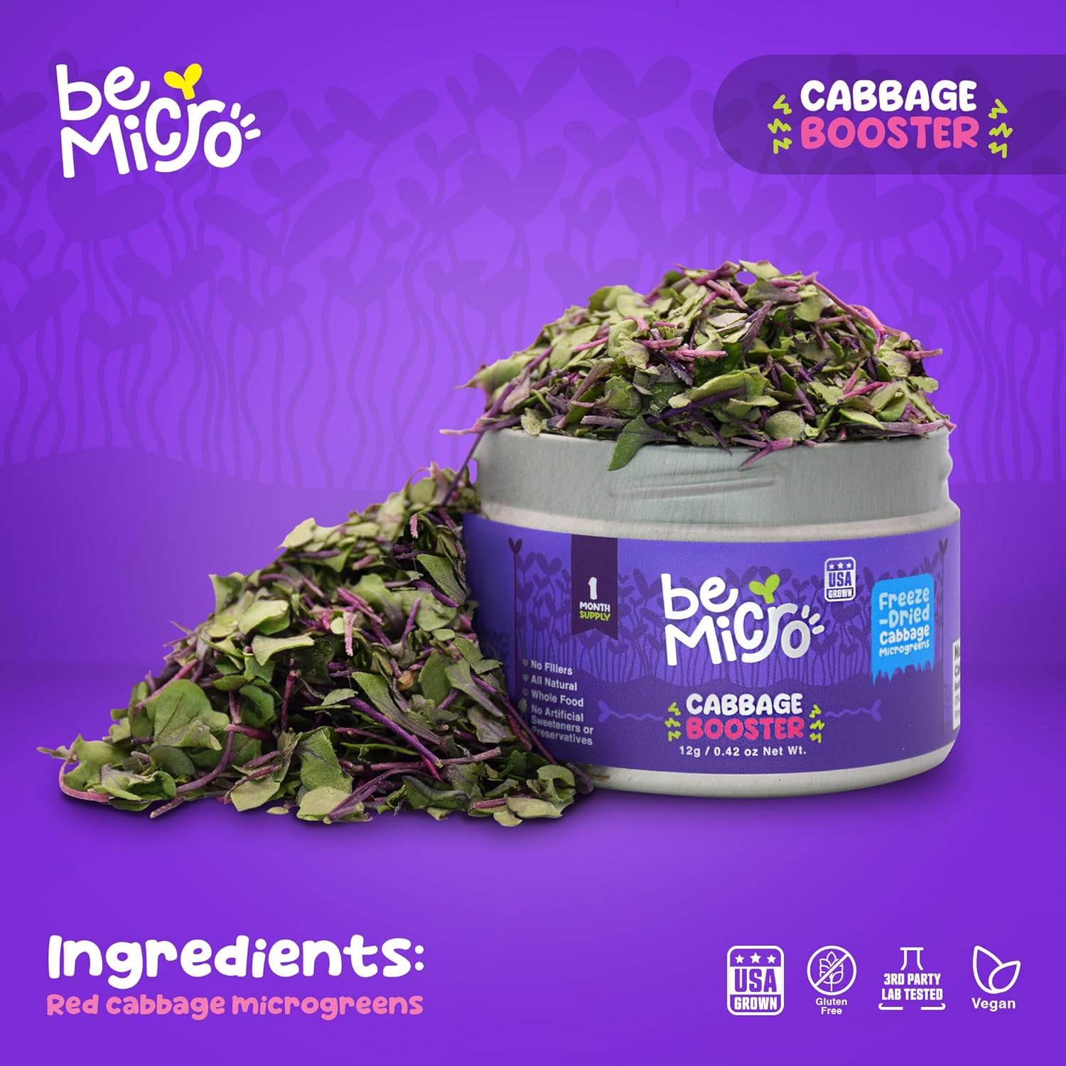 BeMicro Whole Food Microgreens – US Grown, Small Batch, Nutritional Booster – Cabbage Booster Powder – Nrf Activation – 12g