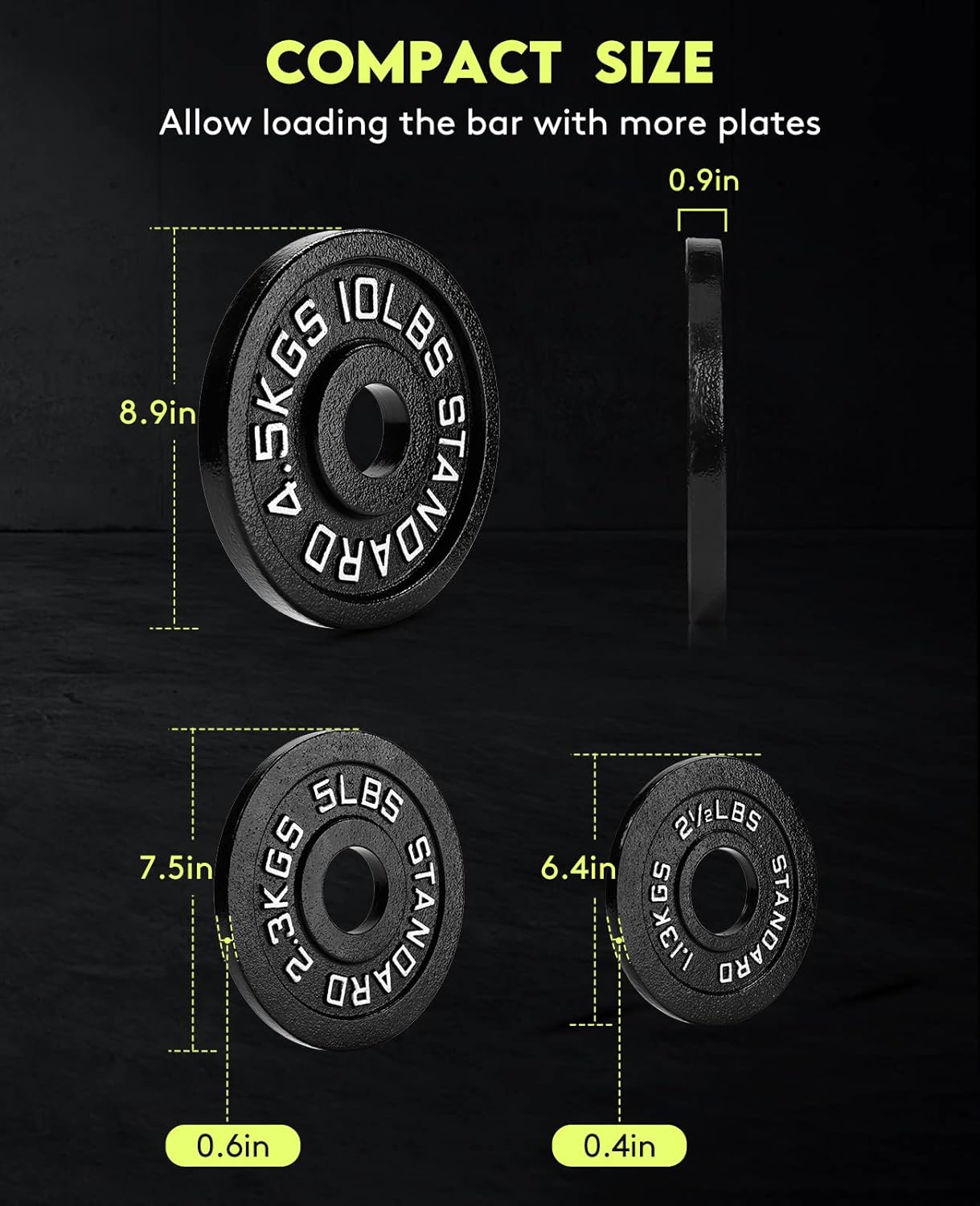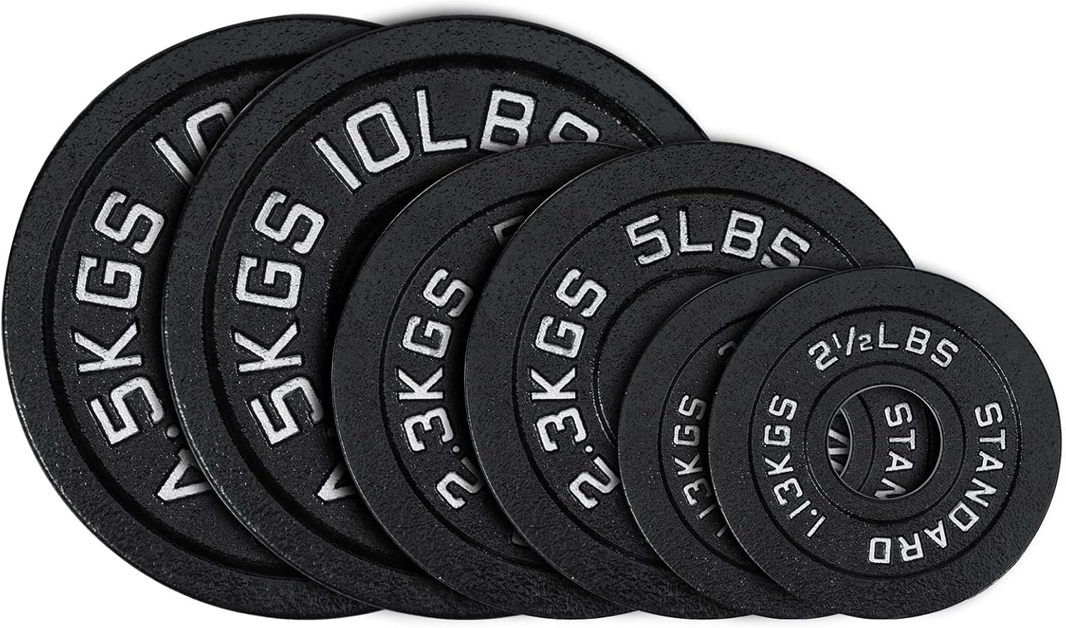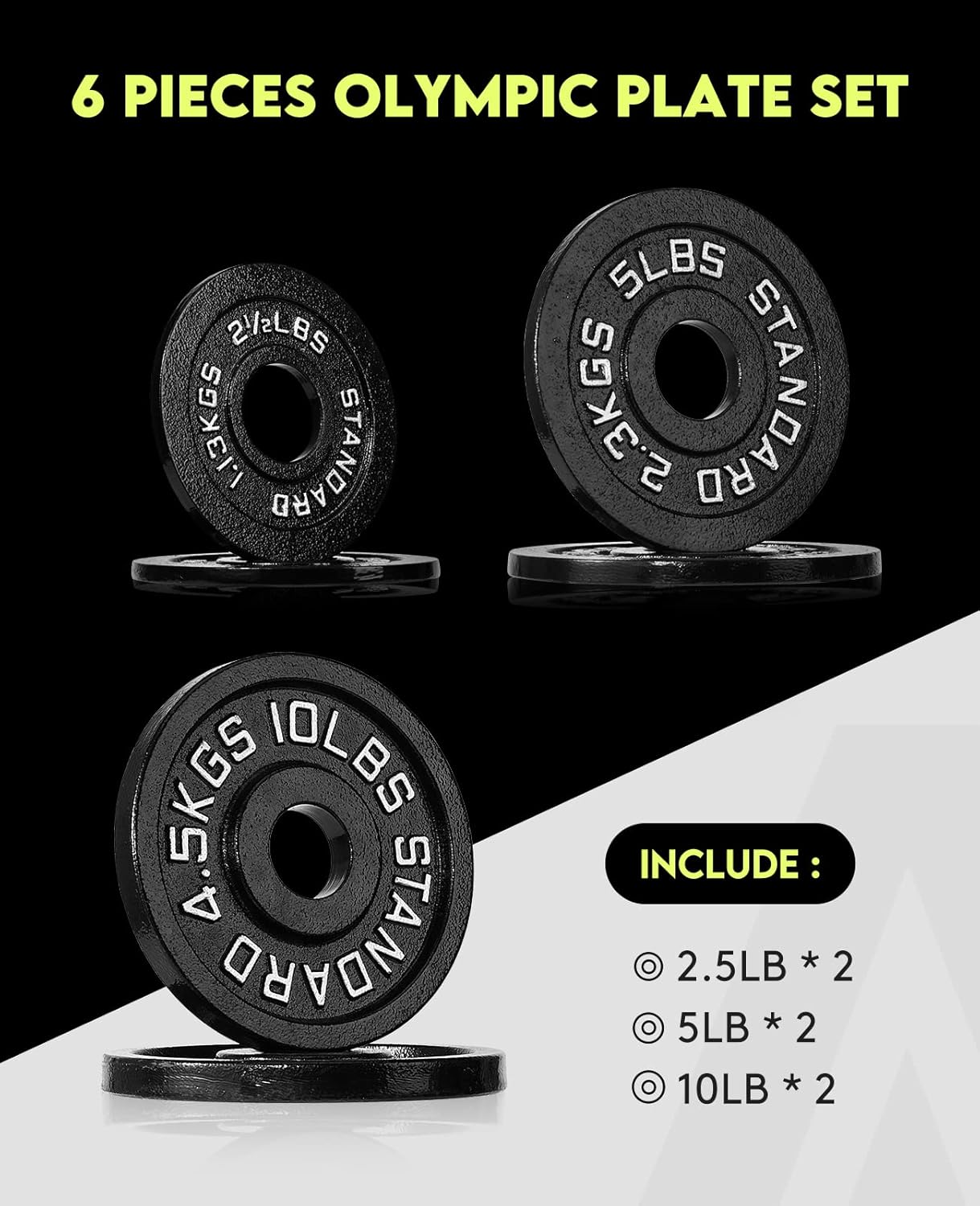 Our weight plates are built to last, with a sturdy, black powder-coated finish that prevents rust and corrosion. Each plate features a clear labeling system, displaying both LB and KG measurements, making it easy to recognize and use.