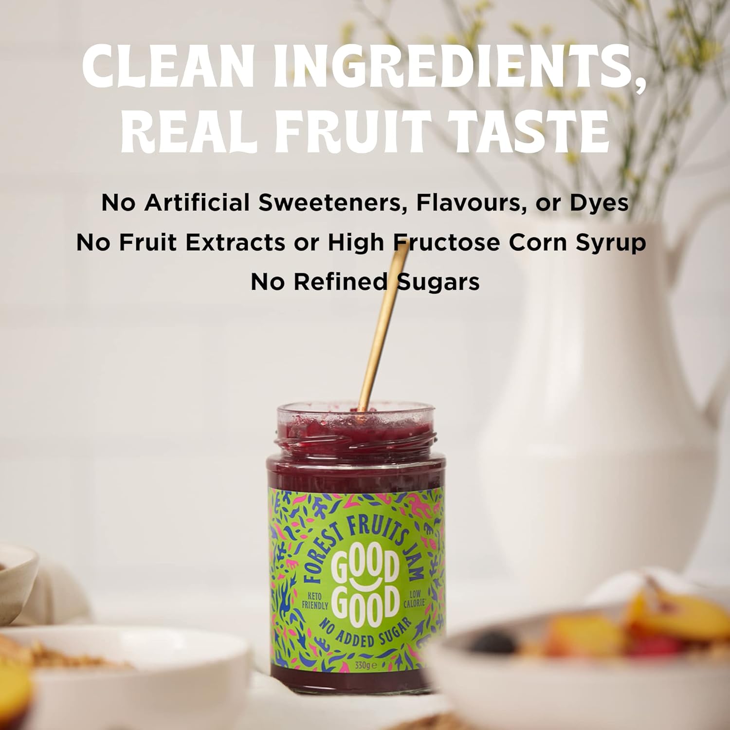 GOOD GOOD No Added Sugar Forest Fruit Jam – Keto Friendly Jelly – Low Carb, Low-Calorie and Vegan – Diabetic Friendly – 12oz / 330g (Pack of 1)