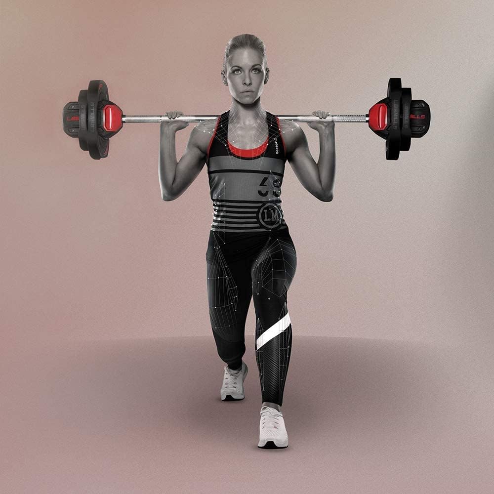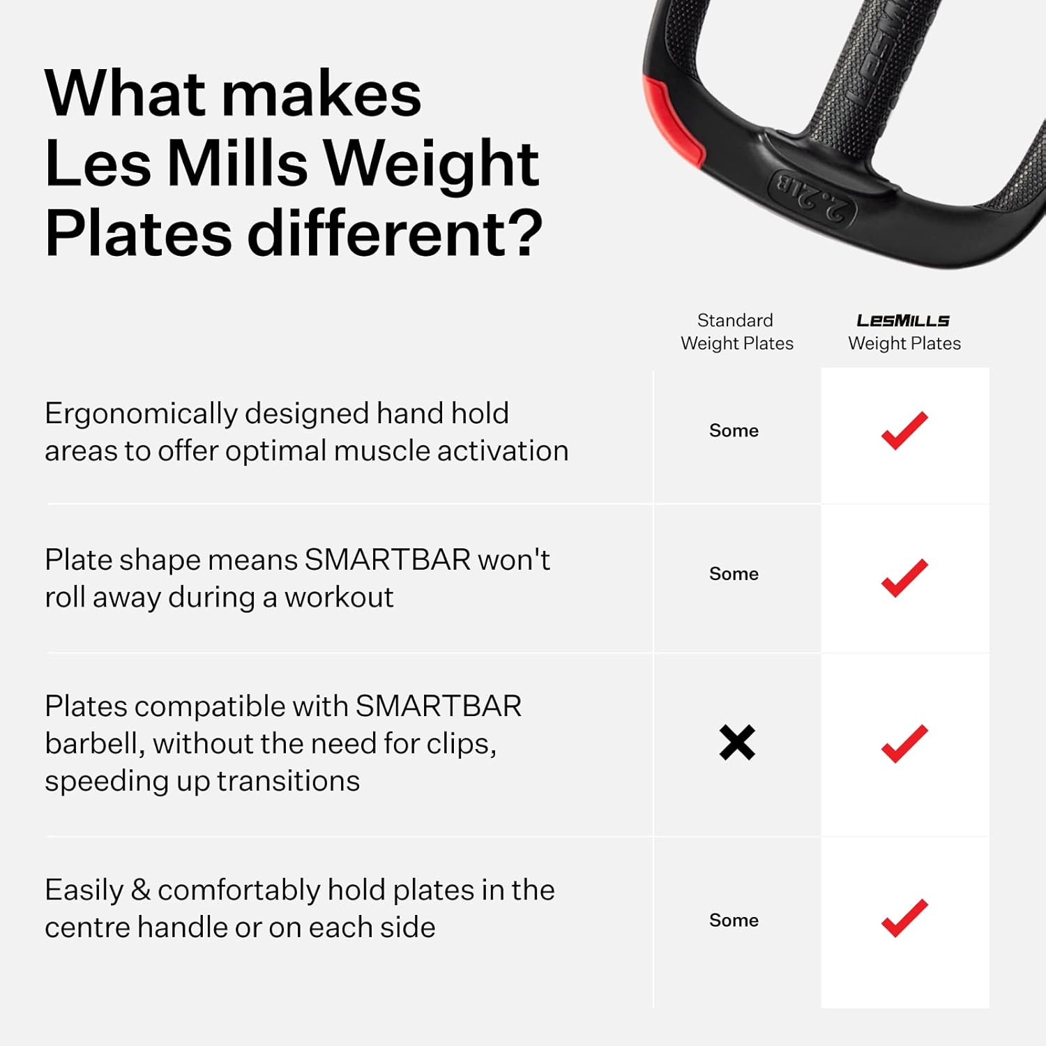 - Squared weight plates lock securely into the SMARTBAR barbell’s ‘gator’ teeth