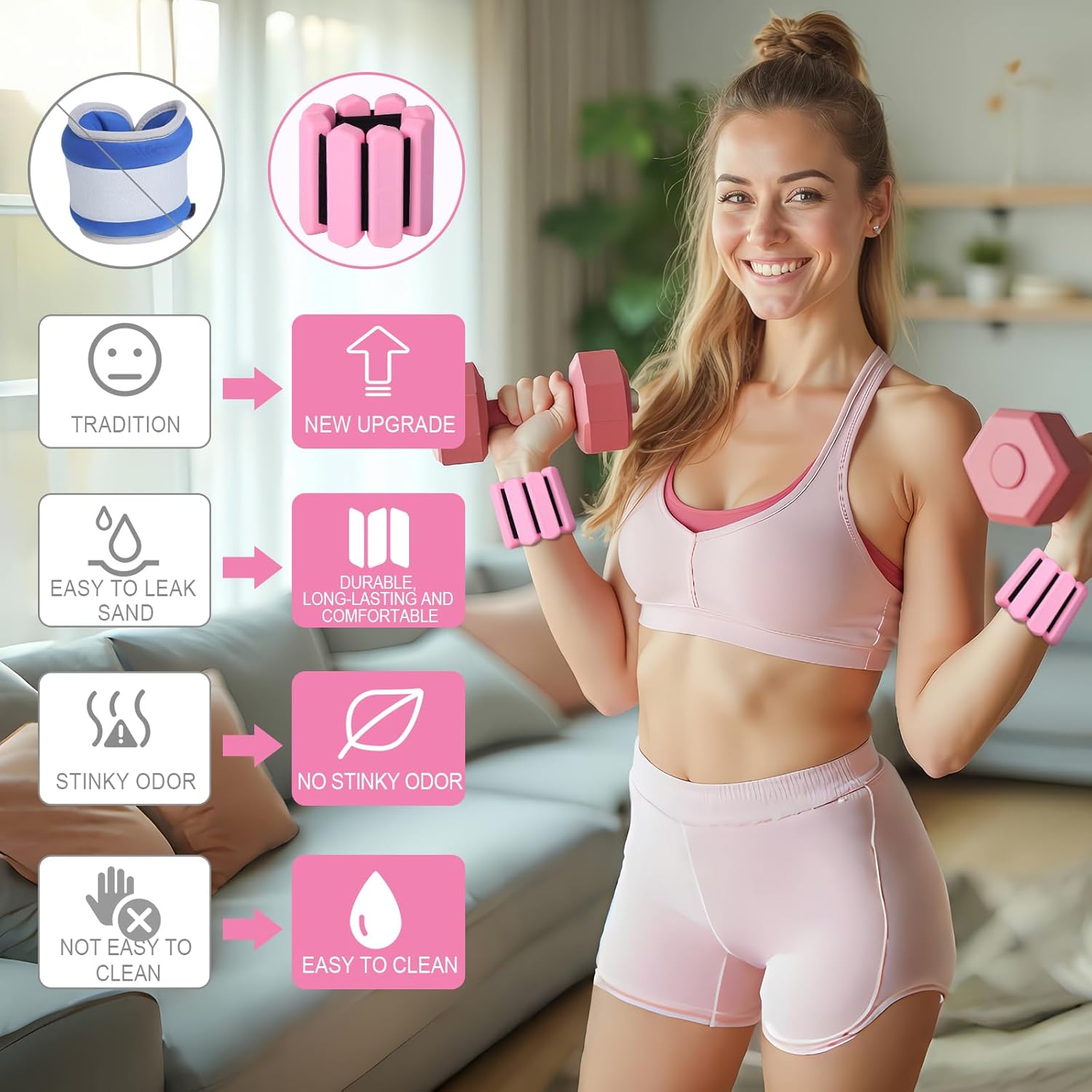 Our ankle weights are made of soft, silicone material, ensuring they are waterproof, sweatproof, and odorproof. They are also easy to clean, making them perfect for daily use.