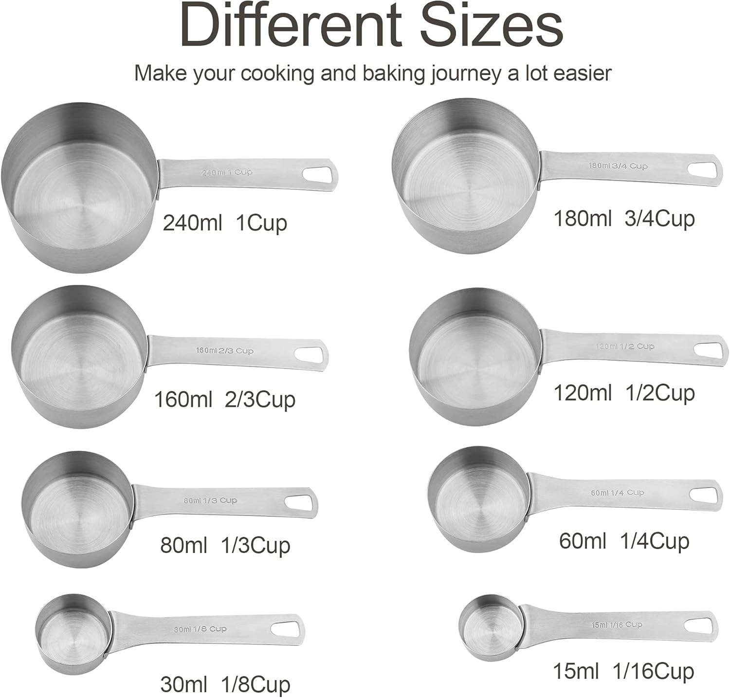 The measuring cups come in the following sizes: