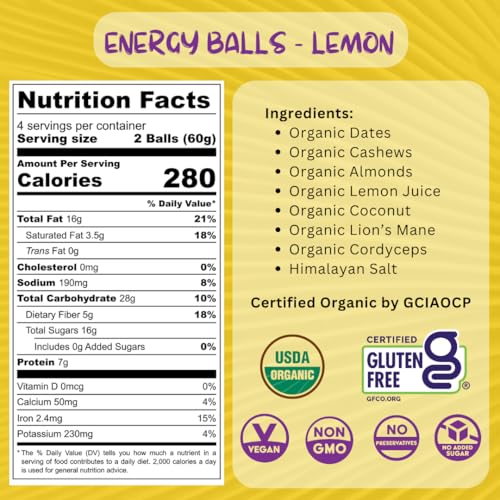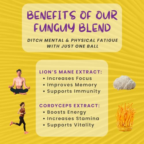 ✔ BOOST FOCUS & ENERGY with LION’S MANE & CORDYCEPS MUSHROOM EXTRACTS: Potent mushroom extracts in every bite, with 30% beta glucans (immunity), 2% erinacines (focus & memory), and 1% cordycepin (energy & stamina) delivering a boost to your physical and mental energy with JUST ONE ENERGY BALL.