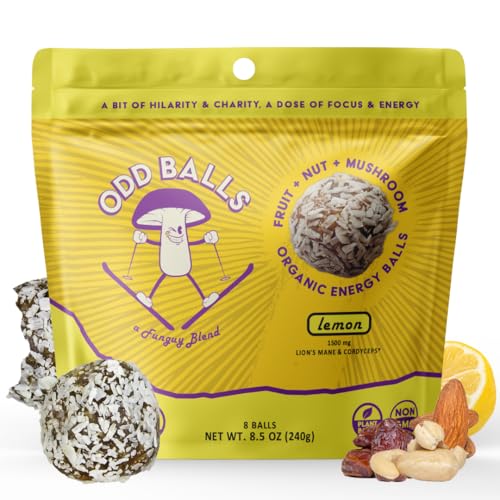 ODD BALLS Organic Energy Balls Lemon – Superfood Mushroom Snack – Running, Cycling, Hiking – Gels, Bars Alternative – Lion’s Mane Focus, Cordyceps Energy – Vegan, Gluten Free Snacks for Kids & Adults