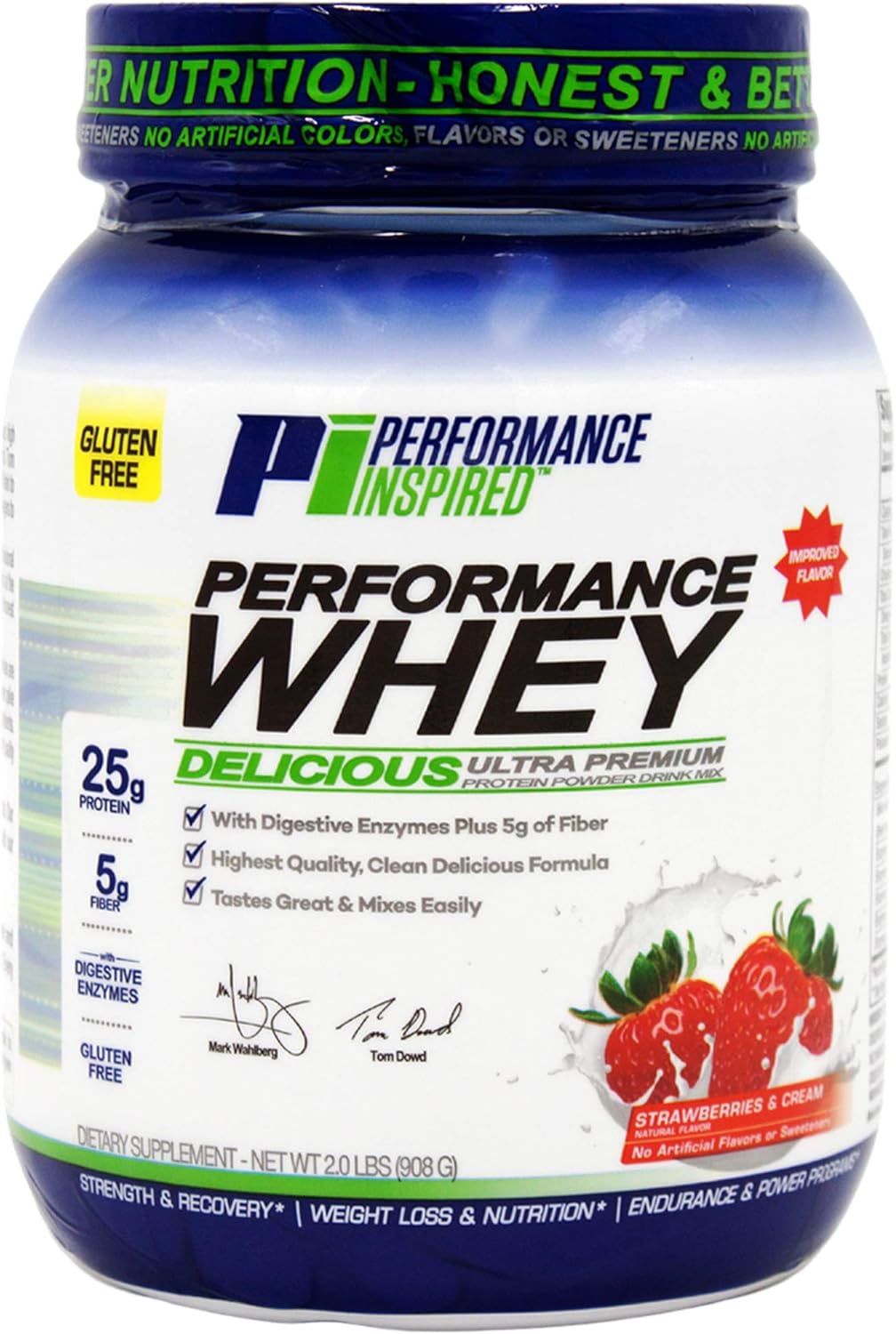 Performance Inspired Nutrition WHEY Protein Powder – All Natural – 25G – Contains BCAAs – Digestive Enzymes – Fiber Packed – Strawberries & Cream – 2lb