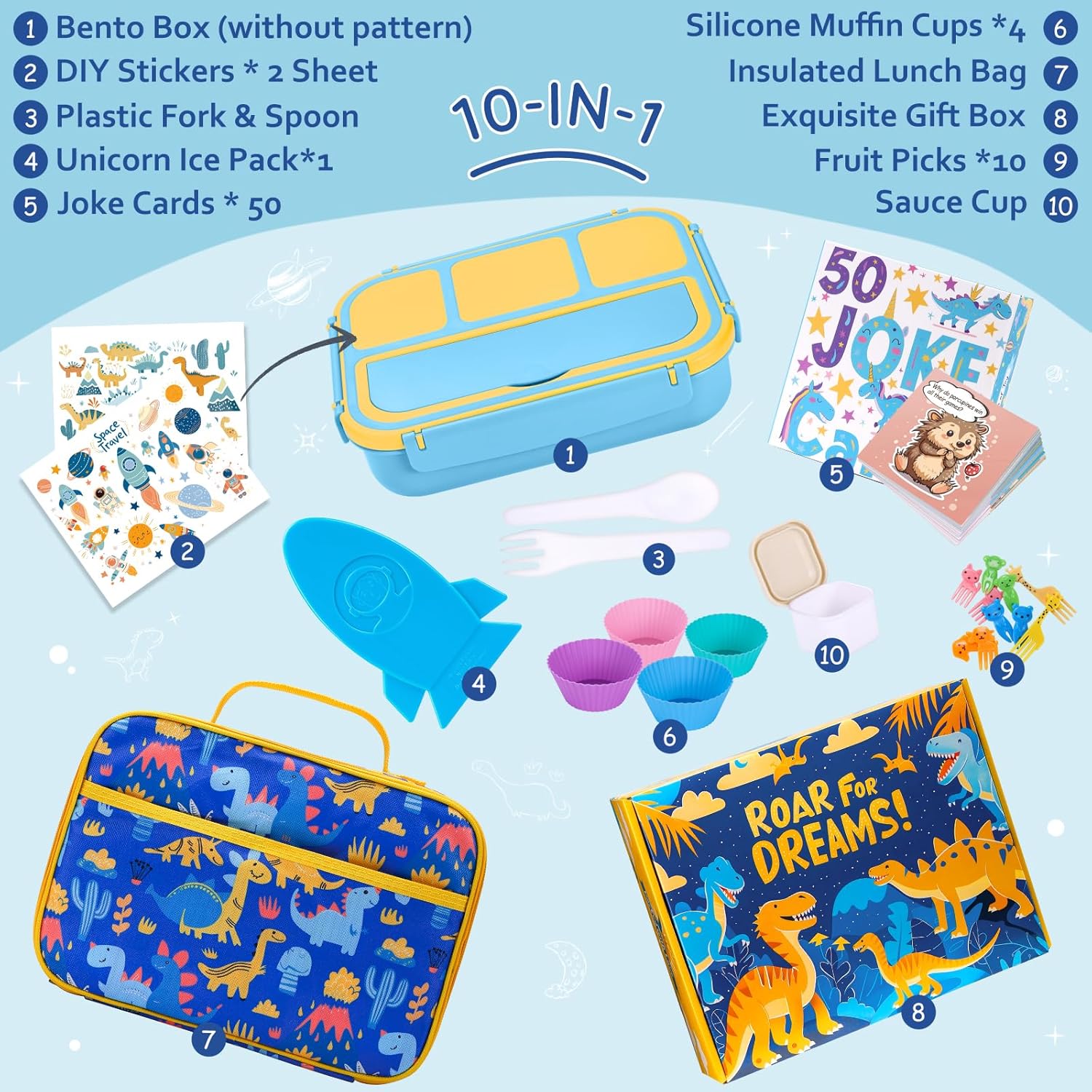 - 2 themed stickers (dinosaur and space)