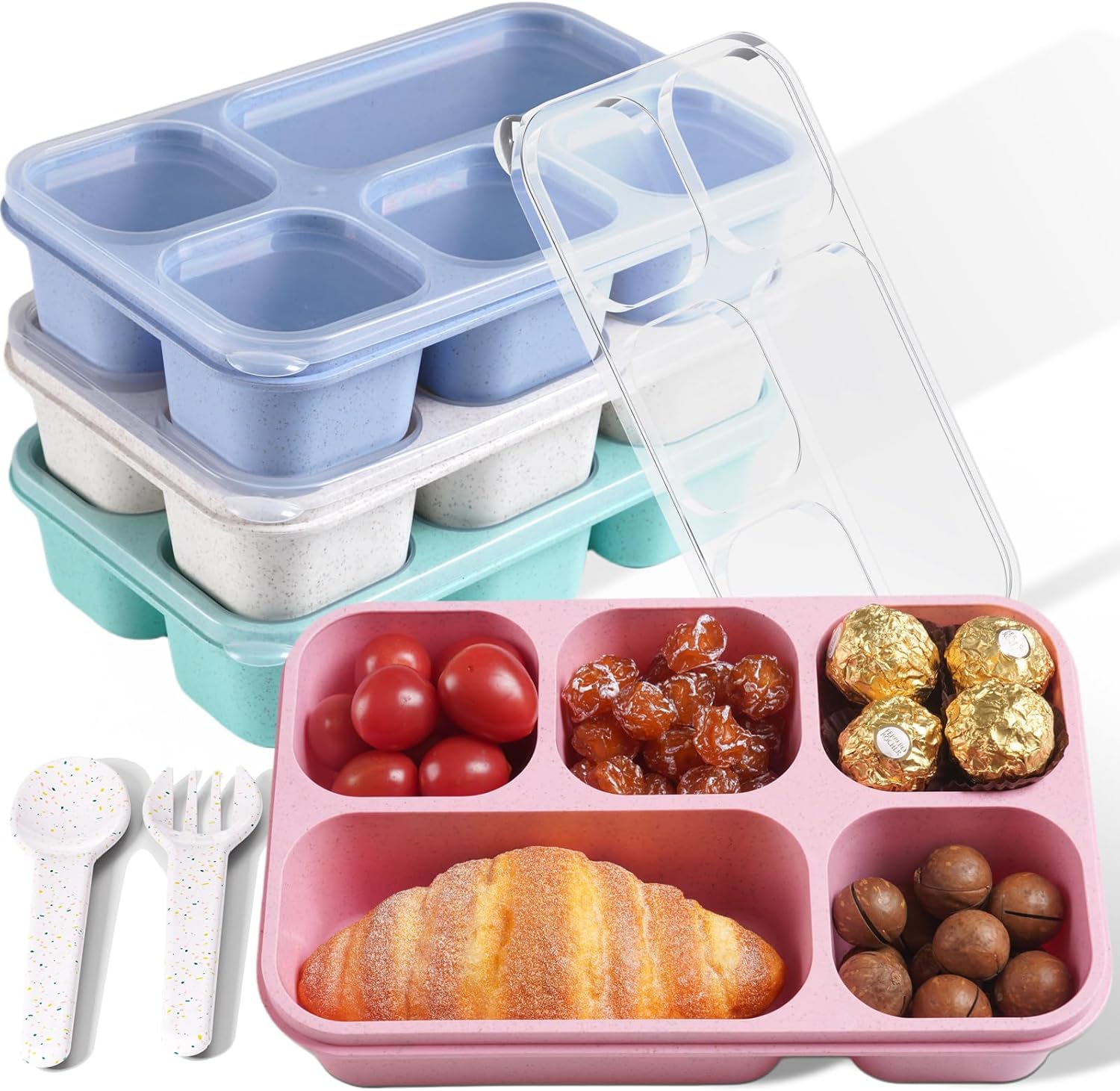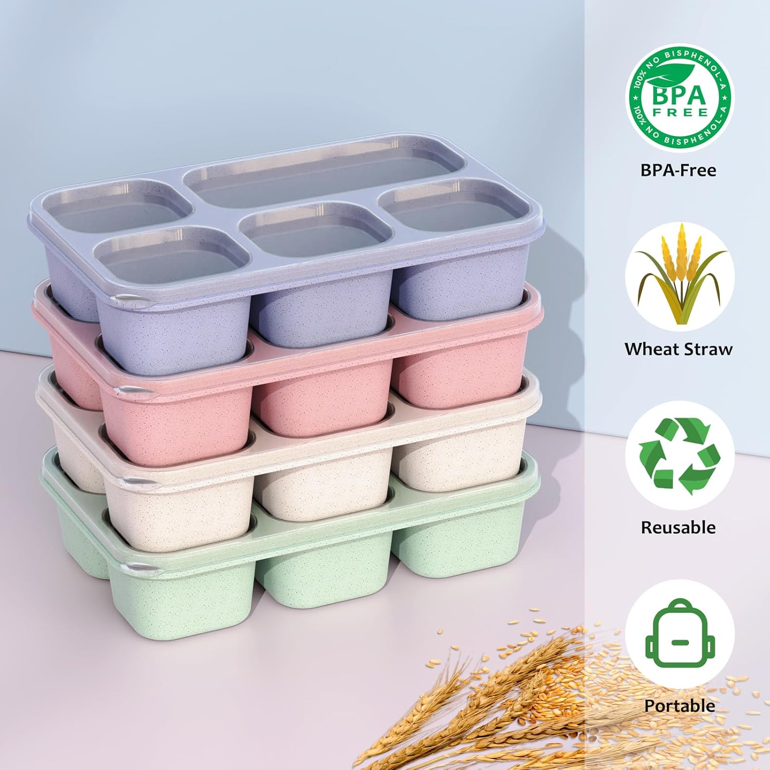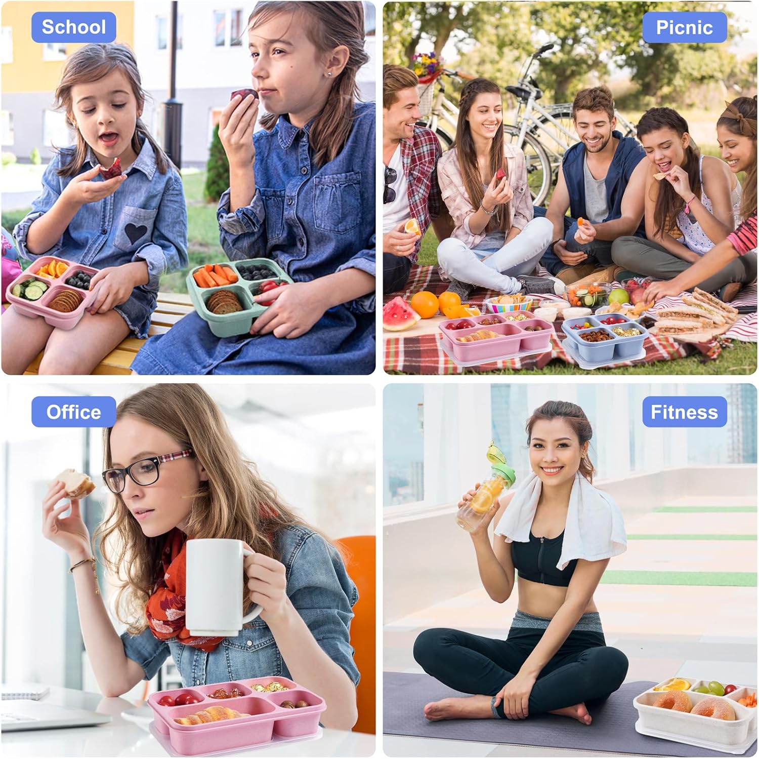 - You will receive a bento box pack of 4, with 4 colors: pink, beige, blue, and green. Sufficient quantity and style of compartment snack containers can meet various daily needs, with 4 perfectly portioned compartments that can balance food distribution without confusion.