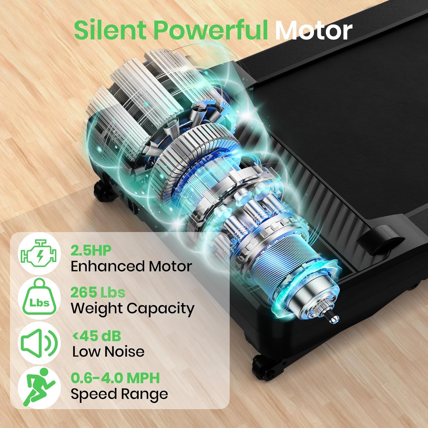 • 2.5HP Power Motor: Supports a weight capacity of 265 Lbs and speed range of 0.6-4.0 MPH for walking and jogging