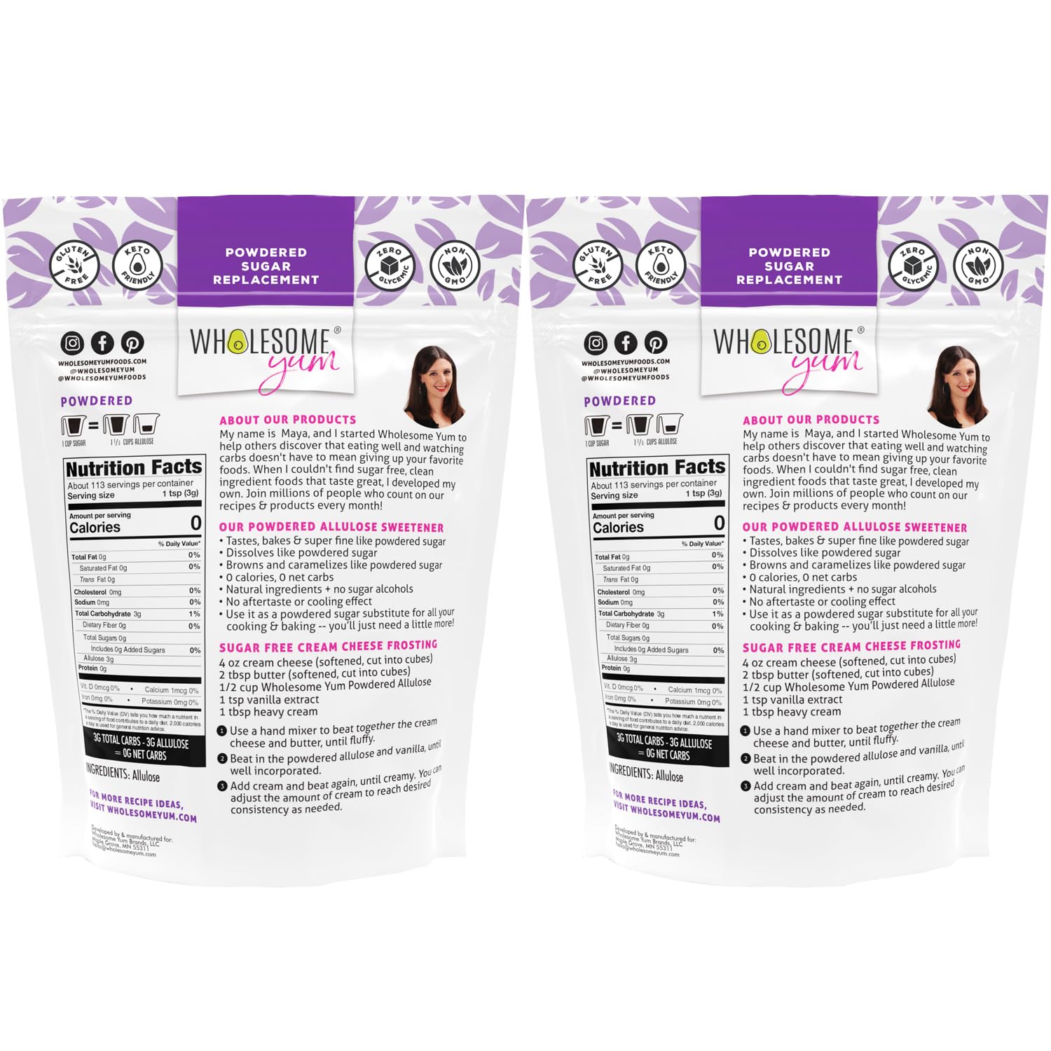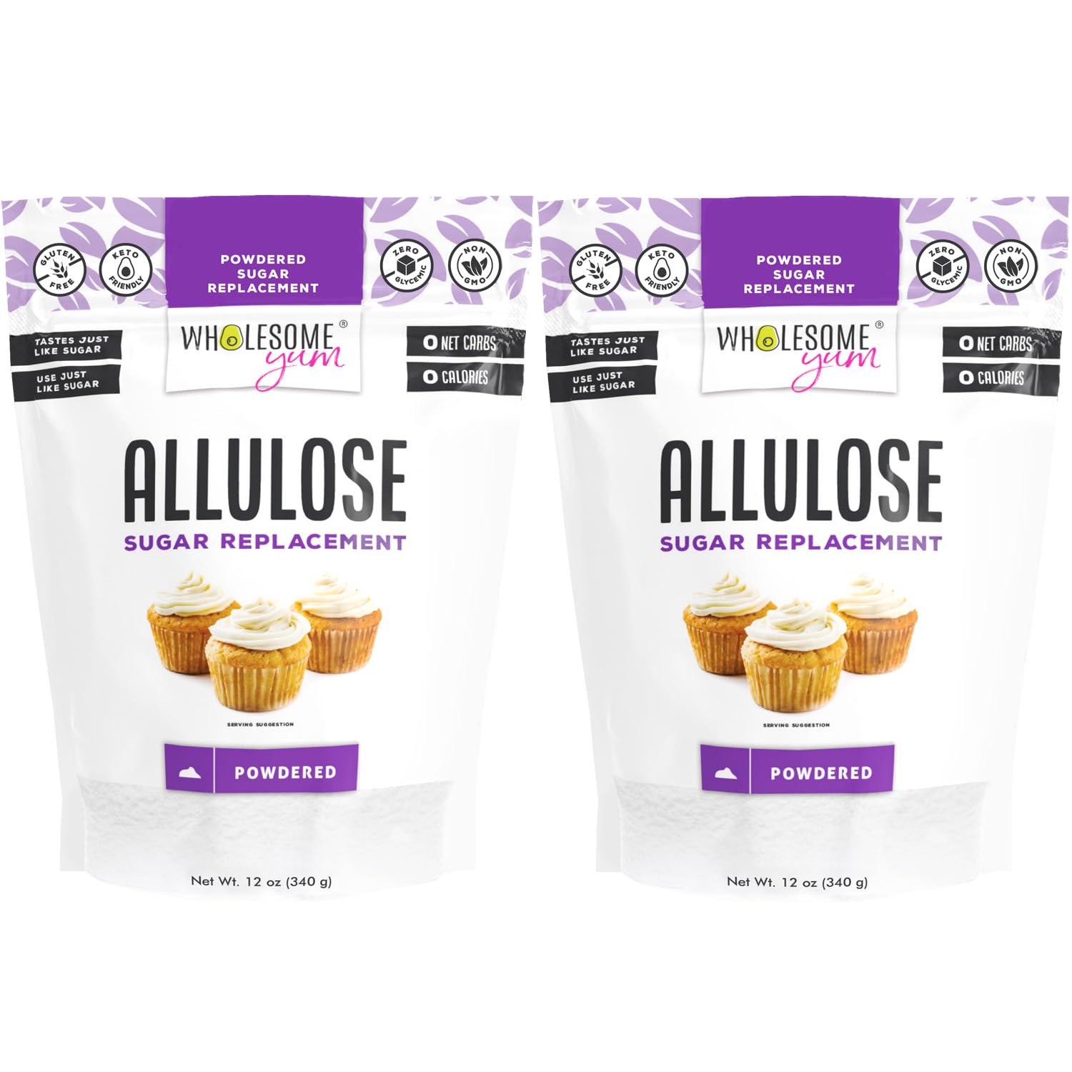Wholesome Yum Powdered Allulose Sweetener – Natural Keto Powdered Sugar Substitute – Non GMO, Zero Carb, 0 Calorie, Sugar Free, No Aftertaste – Confectioners Sugar Replacement (12 oz, 2 Pack)