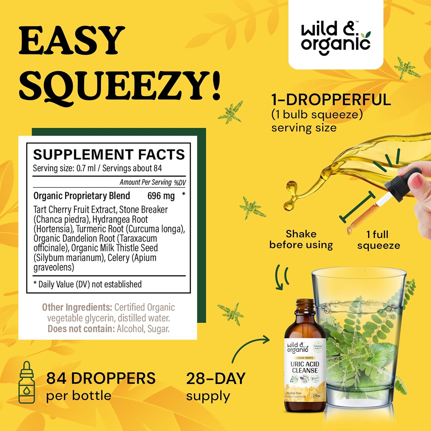 Wild & Organic Uric Acid Cleanse Drops – Tart Cherry, Turmeric, Chanca Piedra Stone Breaker Complex for Kidney Cleanse – Uric Acid Support Supplement – Vegan, Sugar & Alcohol-Free Tincture – 2 oz