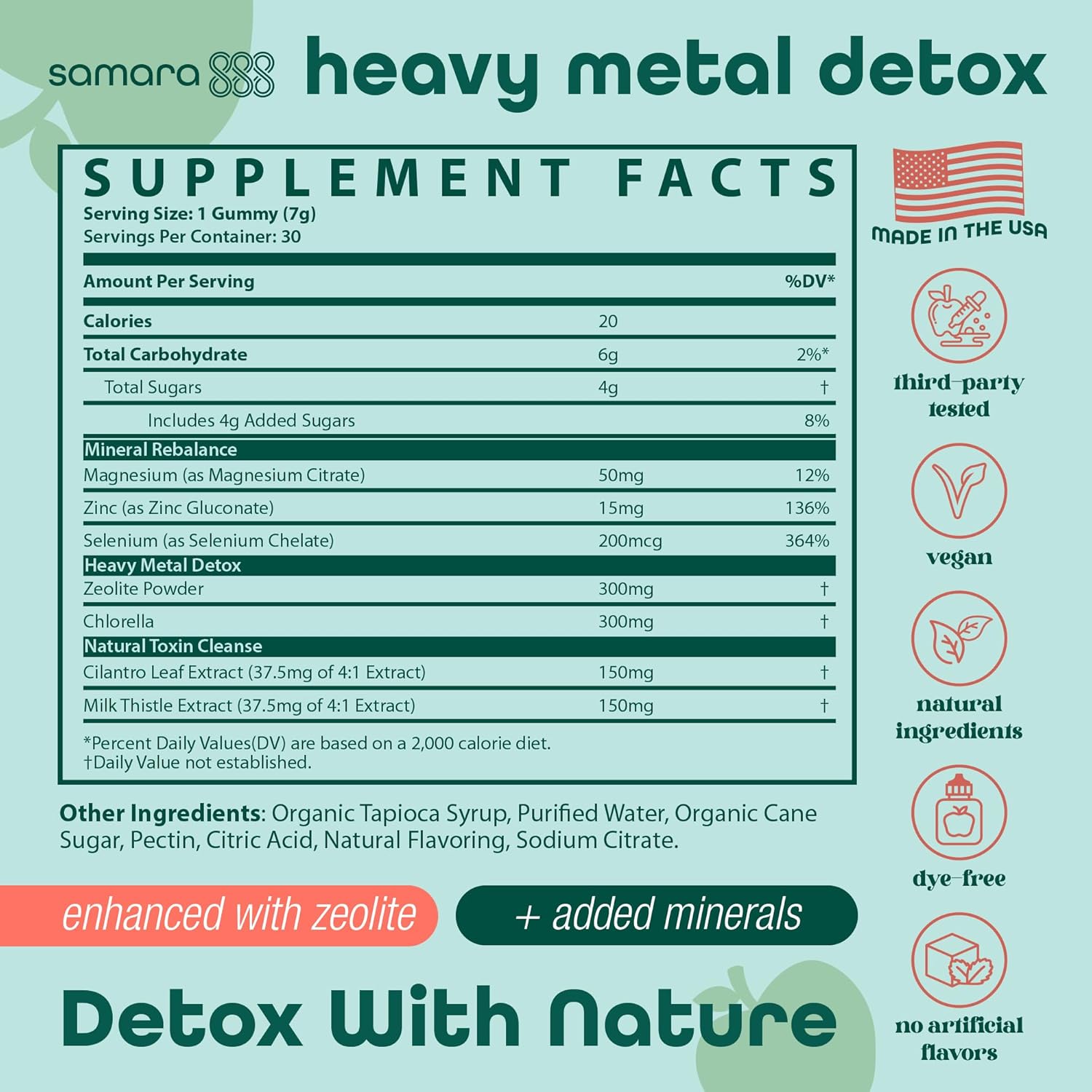 Samara 888 Rebalance Gummies are a natural and gentle way to support heavy metal detox for the whole family. These gummies contain powerful natural ingredients like Zeolite, Chlorella, Cilantro Leaf, and Milk Thistle, which help bind and eliminate toxins, including harmful heavy metals like lead, aluminum, and cadmium.